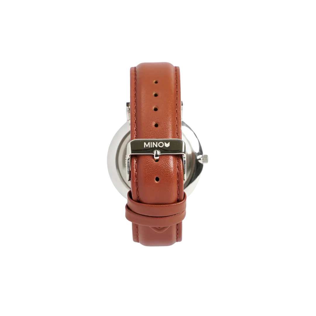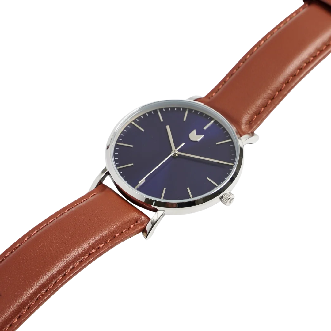 Abyss Arc is a symphony of contrasts. A rich tan-brown leather strap meets a vivid cobalt blue sunray dial, creating a timepiece that’s both bold and refined. Framed in a sleek 41mm case, the clean dial design channels the elegance of a classic dress watch, infused with modern character. As one of MINO’s original four designs, Abyss Arc stands out for its vibrant sophistication and timeless appeal.