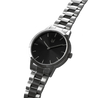 Embrace the elegance of simplicity with Onyx Beam. Its sleek black dial, accented by modern rounded indexes, offers a bold yet refined presence. The contrast of the dial against the silver stainless steel bracelet, with durable three-piece links, creates a striking visual balance. A distinctive hexagonal crown adds a signature edge, while the integrated butterfly clasp ensures a seamless fit. Onyx Beam is the perfect blend of form and function for the discerning minimalist.