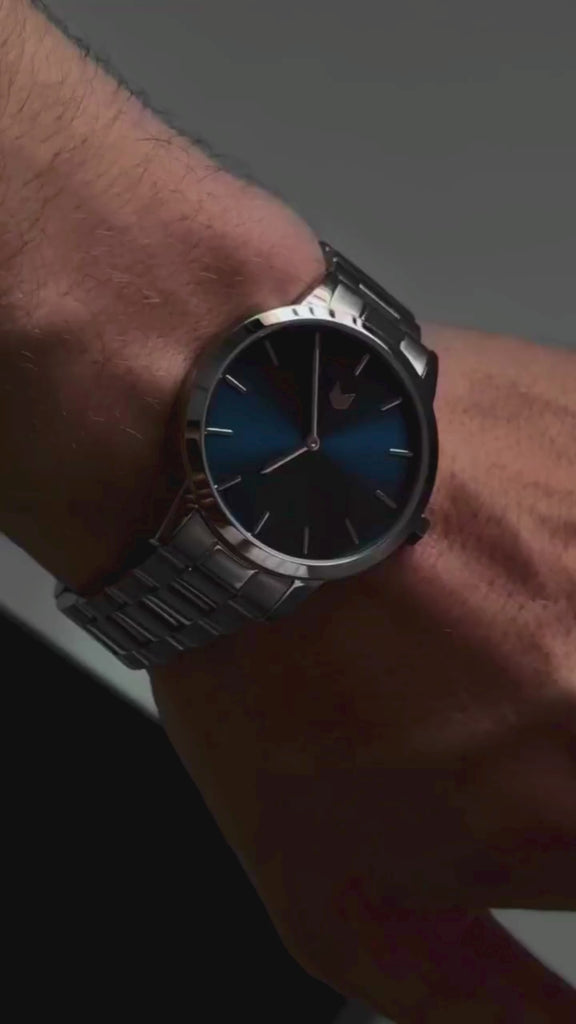Embrace the elegance of simplicity with Onyx Beam. Its sleek black dial, accented by modern rounded indexes, offers a bold yet refined presence. The contrast of the dial against the silver stainless steel bracelet, with durable three-piece links, creates a striking visual balance. A distinctive hexagonal crown adds a signature edge, while the integrated butterfly clasp ensures a seamless fit. Onyx Beam is the perfect blend of form and function for the discerning minimalist.